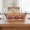 This Amish handmade bread basket with handle will add down-home goodness to every serving of warm bread or buns that you put on your table. This handy hand woven bread basket can be used for a hundred different uses in addition to being the perfect basket to keep and serve bread in. This large handwoven bread basket comes complete with leather loop handles on each end to make it easy to serve and share your breads or for any other use. Hand-woven and signed by the Amish Crafter.