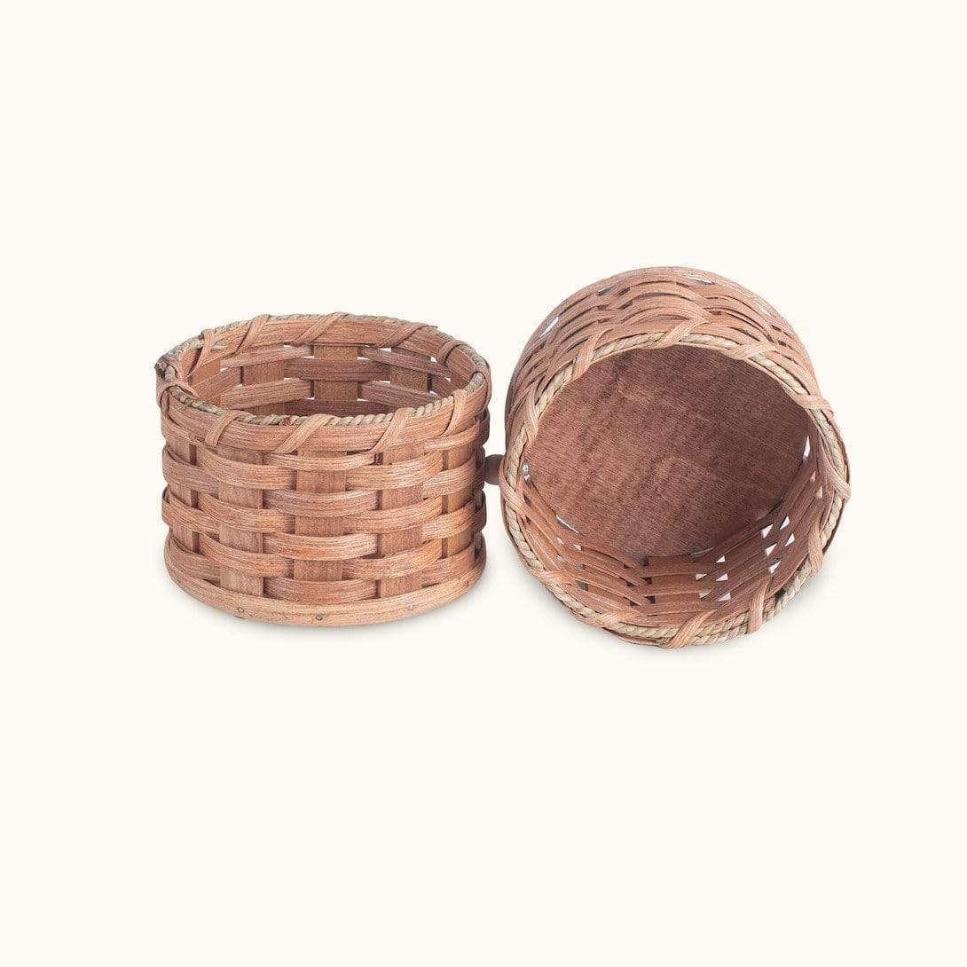 This unique Amish handcrafted peanut basket comes complete with a peanut shell basket and makes a wonderfully practical gift idea! The double basket design of this nut basket eliminates the mess by allowing you to keep your favorite nuts in one side and the empty shells in the other side. The special center swivel design allows you to empty the shells without dumping your remaining nuts. This double basket for peanuts can be used for more than just peanuts. Use this nut basket for pistachios, walnuts, pecans, and any nut you can crack and simply put the empty shells in the attached shell basket. Crafted from rustic Amish wicker, this peanut basket makes a great conversation piece and fits perfectly in any man-cave or on any bar, coffee table, or counter. The rustic look of this peanut shell basket will complement any country, primitive, vintage, or farmhouse home décor. Keep a healthy snack handy at all times when you display and use this Amish wicker peanut basket in and around your family’s living areas. This decorative double peanut basket with shell storage is handcrafted by Old-Order Amish families in the Heartland of the USA and comes with Free Shipping to anywhere in the contiguous United States. Contents not included. Each of the two baskets in this nut basket measures 6 1/2″ in diameter and each basket is 4 1/4″ tall.