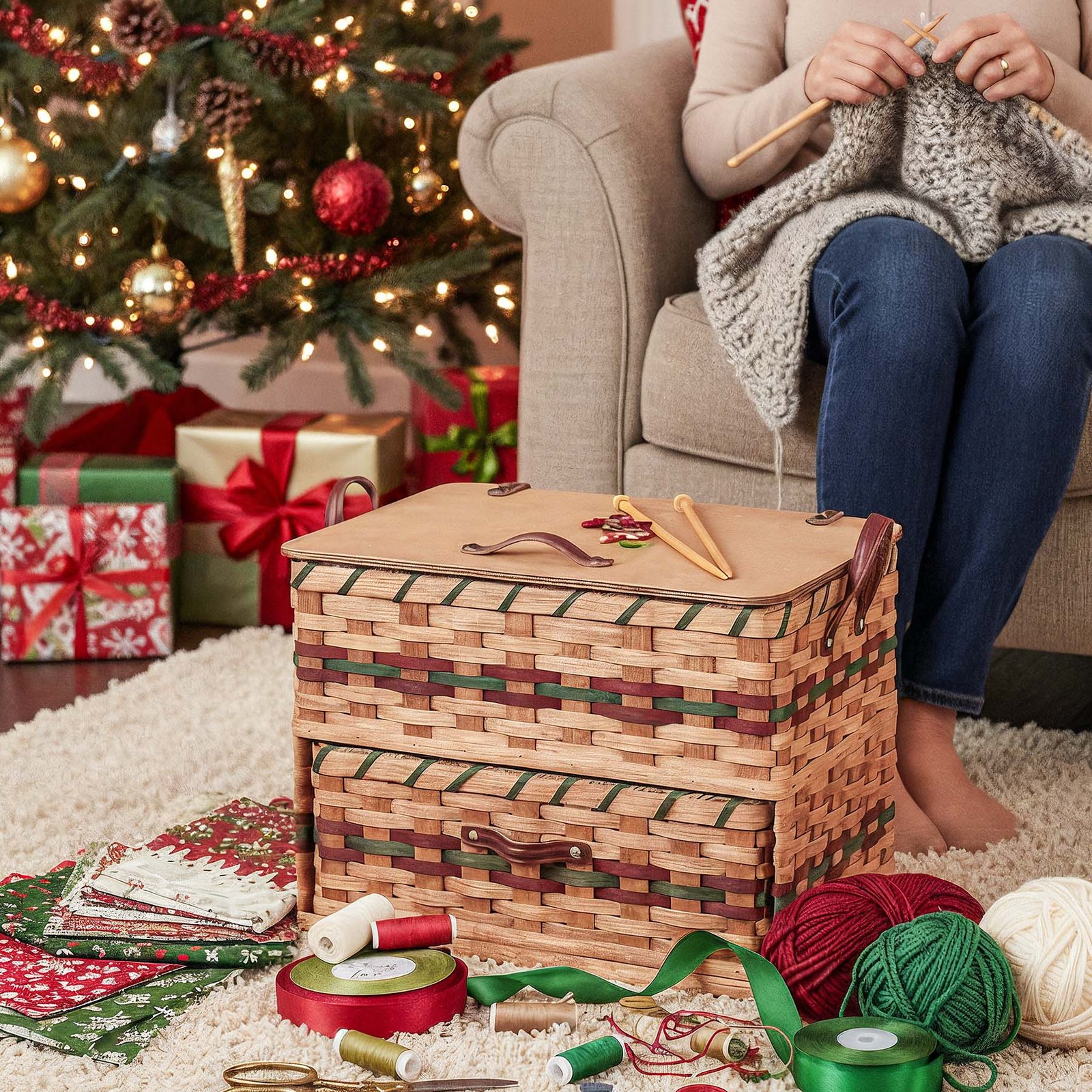 Extra Large Sewing & Craft Box | Organization & Storage Basket w/Drawer