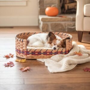 Hand woven in the USA. Give your special dog, puppy or cat their very own unique and cozy place to call home with this Amish handmade wicker pet bed. This luxury handwoven small wicker dog bed is a perfect way to complement the rustic, western, primitive, or country decor in any room of your home. This durable woven wood small wicker dog bed features a low dip entrance area in the front so even an aging senior dog can easily get in and out of this bed. The back of this exclusive woven wood bed is raised to provide your dog with a perfectly protective backrest. Completely handmade in the traditional Amish basketry fashion from durable wood materials by Amish basket weaving families. This heavy-duty wicker pet bed comes with the durability you need to give your pet years and years of charming, rustic, and peaceful comfort. Made in the USA, hand woven in the Heartland and signed by the Amish Crafter. (Pillow Fleece Bedding Cushion Sold Separately)